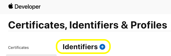 ( Apple ๊ฐ๋ฐ์ ์ฌ์ดํธ์ Certificates, Identifiers & Profiles ํ์ด์ง์์ ์ค์ .)