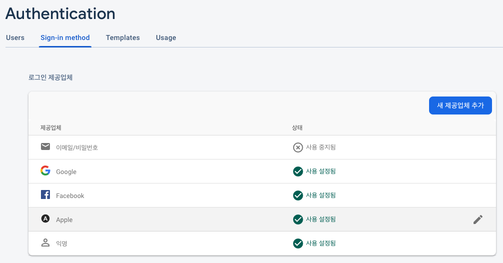 - Firebase Authentication์์ Apple ๋ก๊ทธ์ธ ํ์ฑํ.