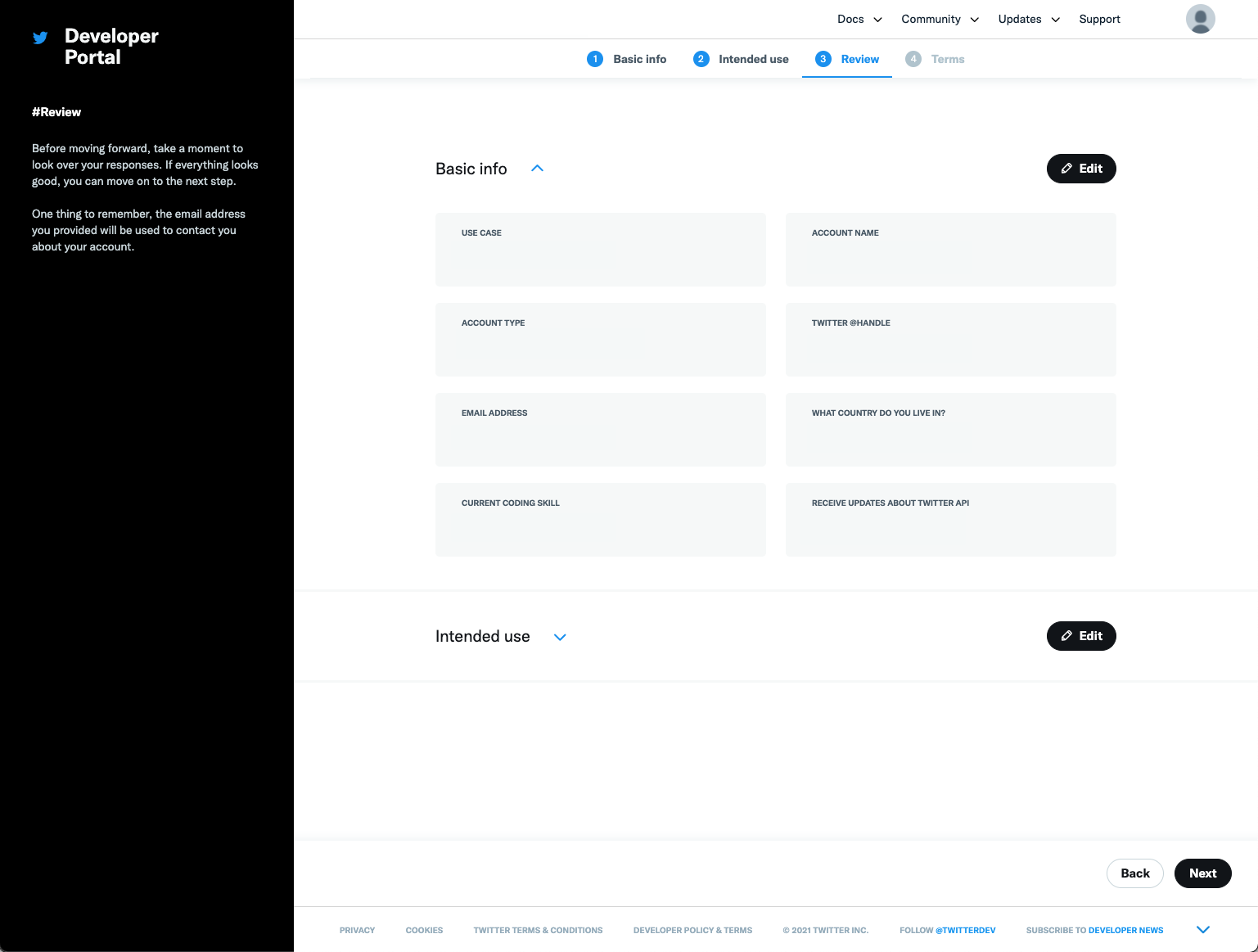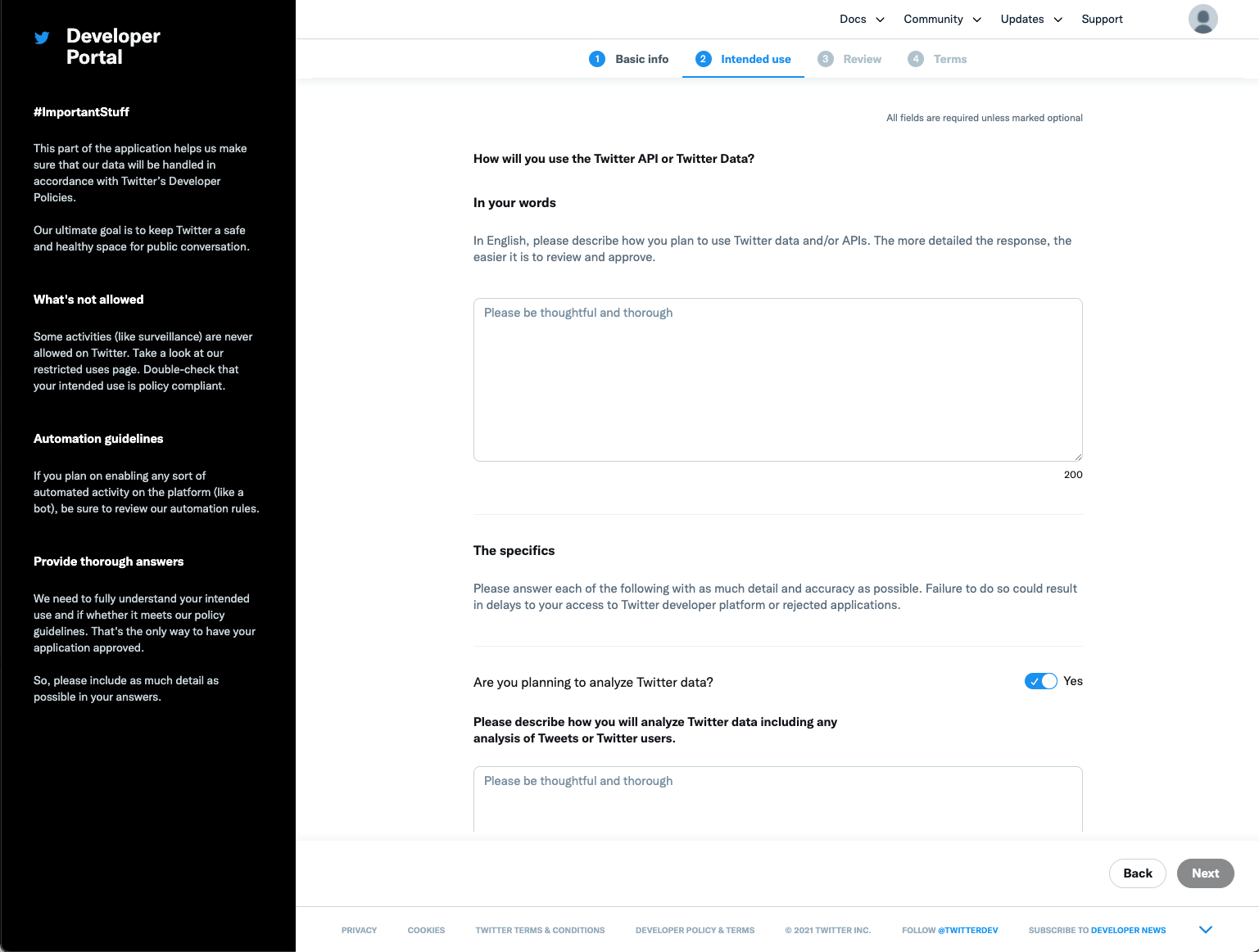 (Twitter API๋ฅผ ์ฐ๋ ๋ชฉ์ ๋ฐ ์ฌ์ฉ์ ์ ๋ณด ์ฌ์ฉ ๋ฒ์, ์ด๋ค ๊ธฐ๋ฅ๋ค์ ๊ฐ์ ธ๋ค ์ธ ๊ฑด์ง ๋ฑ๋ฑ +