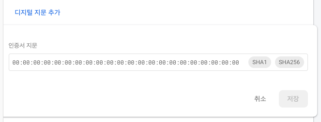 ์๋๋ก์ด๋ ์ชฝ ์ฑ ์ค์ ํ๋จ์ ์๋ ๋์งํธ ์ง๋ฌธ ์ถ๊ฐ ๋ฒํผ์ ๋๋ฌ ๊ฐ์ ๋ถ์ฌ ๋ฃ๊ธฐ ํ๋ค. ( SHA1, SHA256 ์ ํ์ ๊ฐ ๋ชจ๋ ์ถ๊ฐ. )